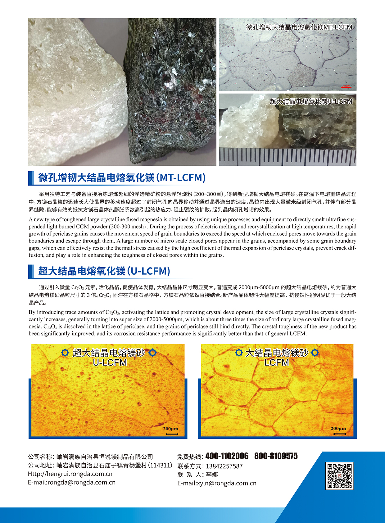 Hengrui Magnesia Beijing Allied Rongda Groupis located in Xiuyan Manchu Autonomous County, Anshan City, Liaoning Province. There are four sets of unique arc furnaces , which can produce 15000 tons of microporous toughened large crystalline and ultra large crystalline fused magnesia annually. (MT-LCFM &UL-CFM)